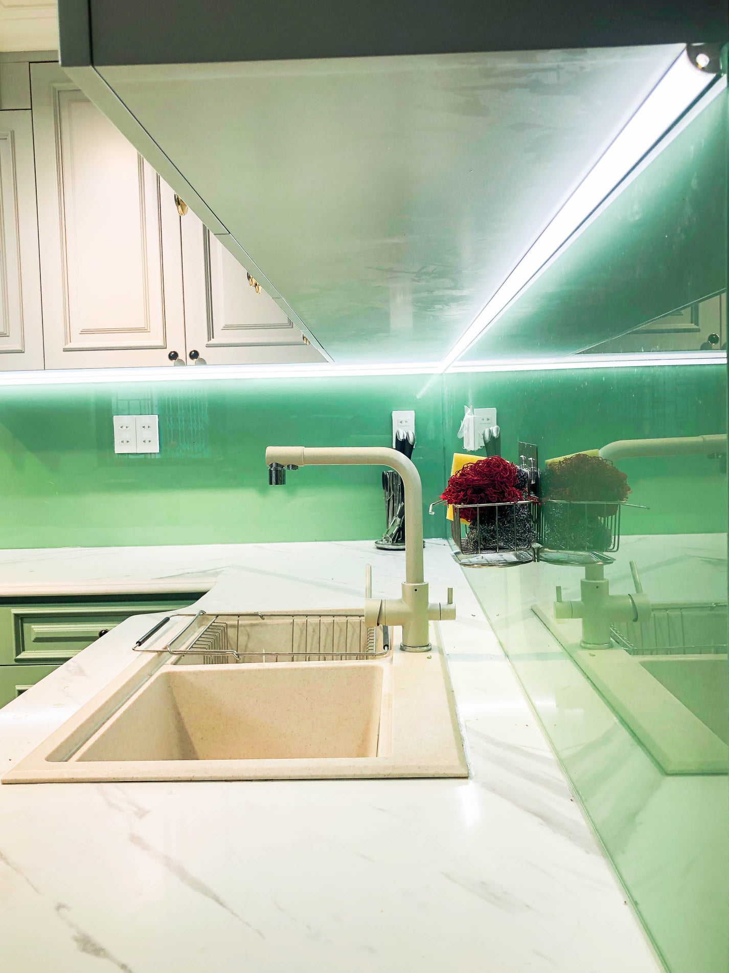 Cùng với chất liệu tủ bếp thì chất liệu Kính bếp và Đá bếp cũng cần được lưu ý tới: