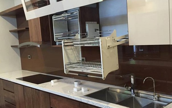- Giá thìa dĩa dao thớt thường gắn cánh tủ bếp dưới, giá xoong nồi bát đĩa thường gắn ngăn kéo rộng 700-800-900mm, có thể để dưới bếp từ để tiện sấy.