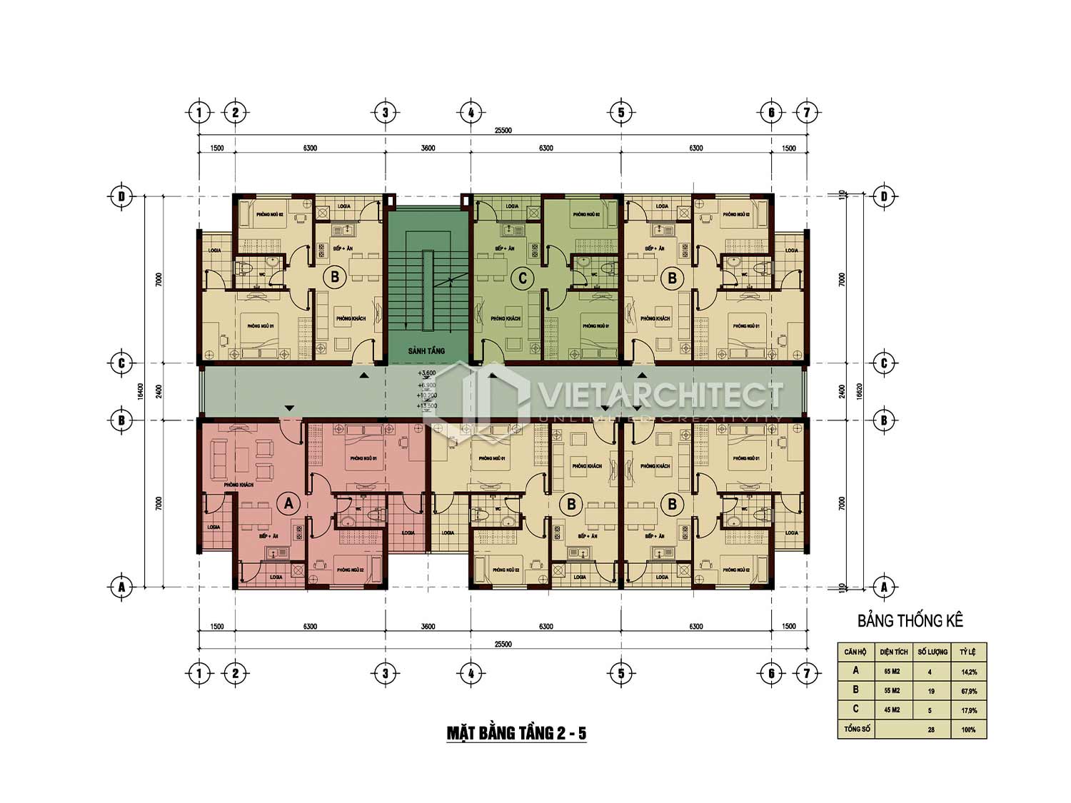 Thiết kế chung cư thu nhập thấp mặt bằng tầng 2-5.